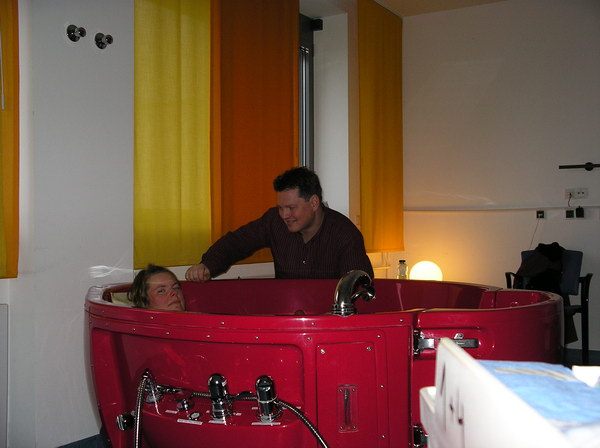 01.55Uhr - Die erste Wehe. Dann Wehentest in der Badewanne.